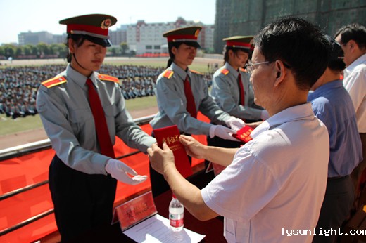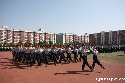 9点整,在庄严的国歌声中,阅兵典礼暨表彰大会正式开始。在新生们期待的目光中,董事长罗爱平在张宝根上校和学工部部长蔡士元的陪同下来到列队前,逐一检阅。